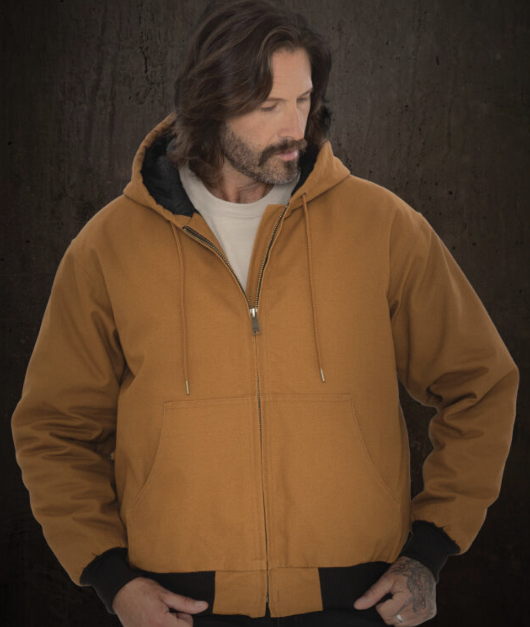 Durable canvas and quilted insulation make the Yukon Hooded Bomber your go-to for lasting warmth without weight. Adjustable hood, heavy-duty zipper, and rugged construction provide mobility, comfort, and classic style for demanding workdays or weekend adventures.