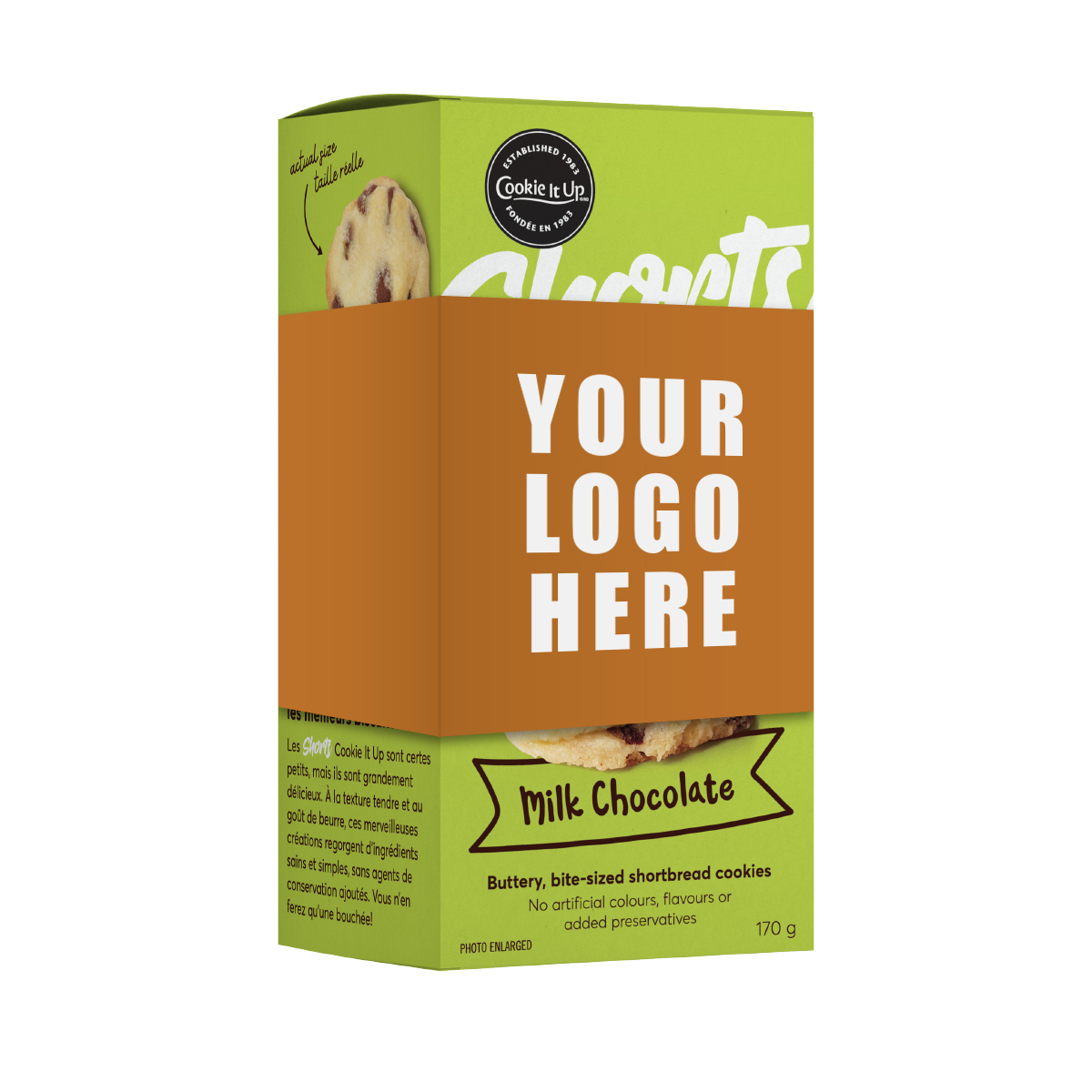 INGREDIENTS: Butter, Wheat flour, Milk chocolate (sugar, unsweetened chocolate, milk ingredients, cocoa butter, soy lecithin, vanilla extract), Corn starch, Icing sugar.